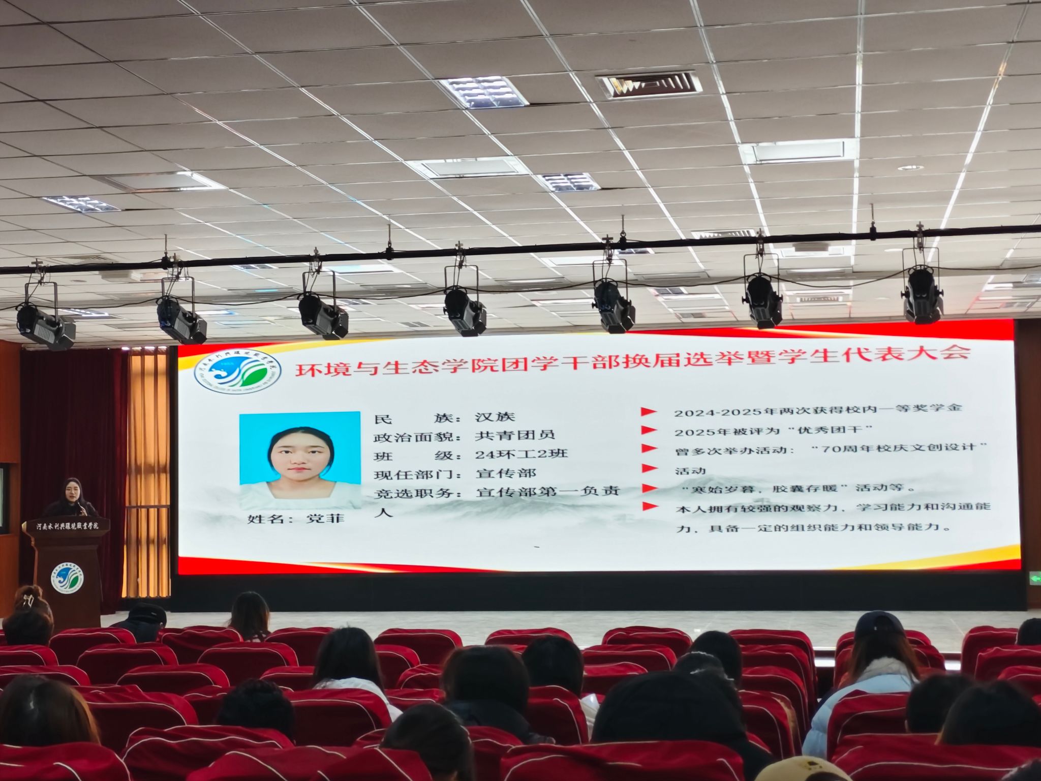 为加强团学组织建设,推进学生工作有序传承,12月9日,谈球吧体育官网入口“第五届团学干部换届选举暨学生代表大会”在德礼讲堂二楼隆重召开。学院党总支书记邢伟明、党总支副书记何欢、学生群团办公室主任王慧娟及各辅导员出席会议,全院120名学生代表参会,共同见证团学组织的新老交替与使命传承。大会在庄严的国歌声中正式拉开帷幕。