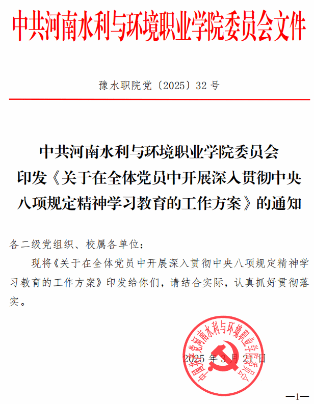 豫水职院党〔2025〕32号 关于在全体党员中开展深入贯彻中央八项规定精神学习教育的工作方案