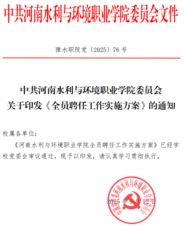 上一条: 豫水职院党〔2025〕75号 关于印发《岗位职责指导性意见(修订)》的通知