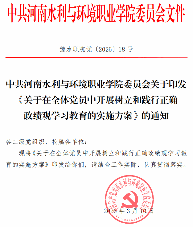豫水职院党〔2026〕18号 关于印发《关于在全体党员中开展树立和践行正确政绩观学习教育的实施方案》的通知