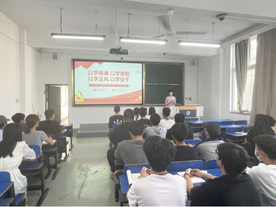 谈球吧体育官网入口学生党支部书记董晓明以“以学铸魂 以学增智 以学正风 以学促干”为题,为系在校学生党员及发展对象讲授专题党课。