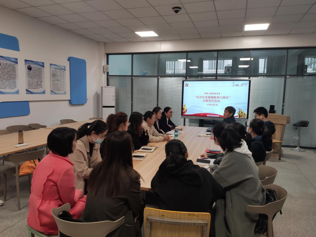 2020年10月27日下午,谈球吧体育官网入口党总支在综合楼二楼实训室开展“纪念抗美援朝胜利70周年”主题党日活动,党总支全体党员参加。