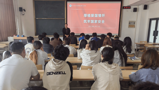 为深入学习贯彻习近平新时代中国特色社会主义思想,进一步增强青年学生的国家安全意识,厚植爱国情怀,筑牢思想防线,谈球吧体育官网入口教师支部书记郭雪白以“根植爱国情怀,筑牢国家安全”为主题为学生讲授专题党课。