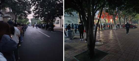 接上级通知,5月10日早上凌晨五点开始全员核酸,我系排在第一位。这意味着学生要在凌晨4:30起床,对学生是一个极大的考验。然而,令我感动的是,同学们积极响应学校的要求,早晨4:40分左右就已经集结完毕,有序地排好队,等待核酸检测。同学们的配合让在场每位老师的心里充满了感动,疲惫感也消散而去,相信我们很快就能会看到黎明的到来。