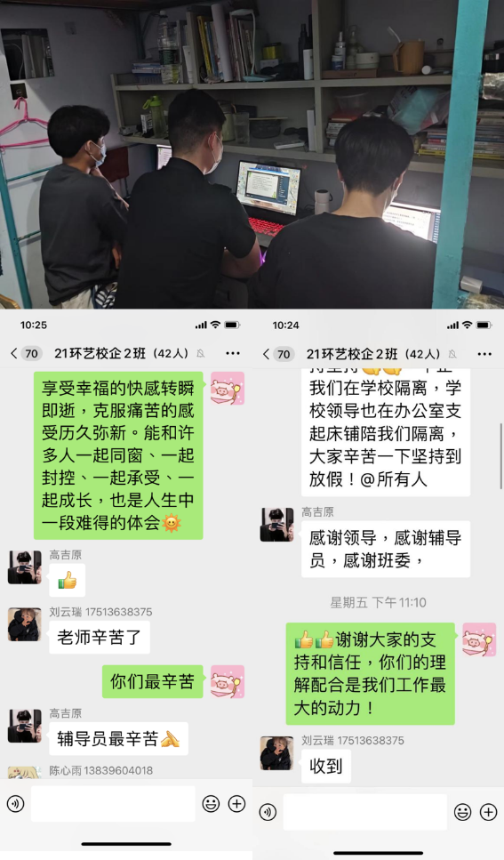关注学生健康的同时,我不忘叮嘱同学们,虽然是特殊时期,但是仍要以学习为重。越是艰难时刻,越能考验大家的毅力。网课期间,在师生的共同努力下,同学们坚持做到了停课不停学,收获了成长,给大学时光留下了难忘的回忆。