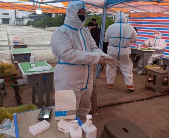 1月13日,21环艺2班学生高潇洁在许昌市襄城县十里乡高庄村担任疫情防控志愿者,负责核酸检测信息采集和排查外来人员工作。她说:“不管是在象牙塔里畅想未来的莘莘学子,还是在田间地头挥洒汗水的青年村干部;无论是写字楼中伏案工作的年轻白领,还是在大街小巷穿行不息的快递小哥,只要有一颗赤子之心、有一腔报国热血,把理想抱负熔铸在脚踏实地的奋斗中,青年人总能打拼出一方属于自己的天地。让我们只争朝夕,不负韶华,奋斗在路上!”