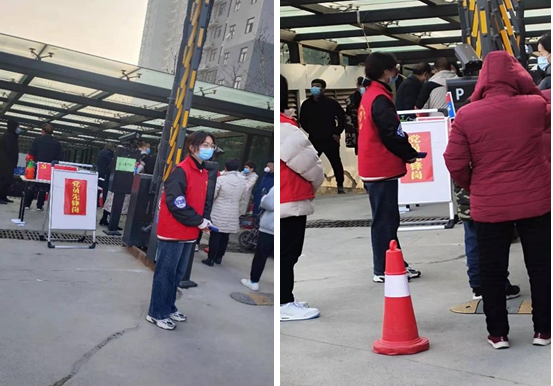 1月13日,21环艺1班学生徐慧在安阳市文峰区平原社区景江城市花园一期担任疫情防控志愿者,负责核酸检测信息采集工作。她说:“这次志愿服务的经历让我深切地体会到了医务工作者和防疫一线工作人员的辛苦。致敬这些默默无闻为社会服务的平凡英雄,他们是我学习的榜样。”