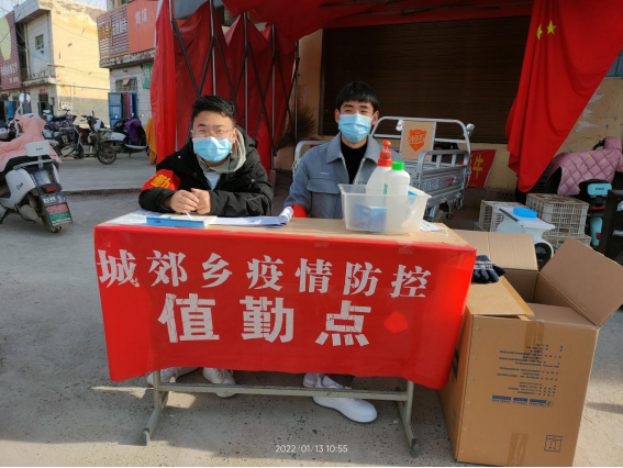 1月8日以来,20生态2班学生唐二伏在许昌市襄城县山头店镇寺门村担任疫情防控志愿者,主要负责核酸检测结果的统计和卡点值班工作。他说:“新时代新征程,新青年兴家乡。在志愿服务工作中,我会用最真诚的心和最积极的行动为疫情防控奉献自己的力量。虽然我还不是一名共产党员,但是我的心永远向党,我定会在党旗引领下坚守‘疫’线,守卫家乡!”