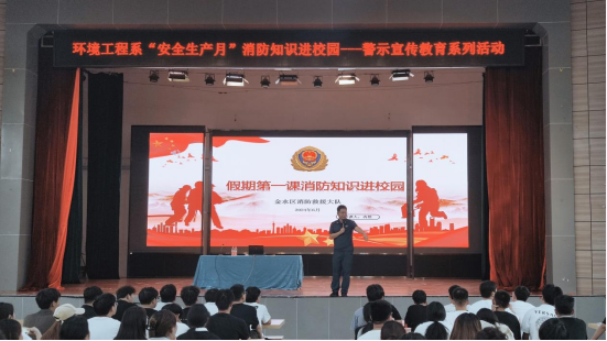 为营造“人人讲安全,个个会应急”的校园安全氛围,6月18日,谈球吧体育官网入口邀请郑州市金水区消防大队宣传讲师冉然为学生开展消防安全宣传讲座。