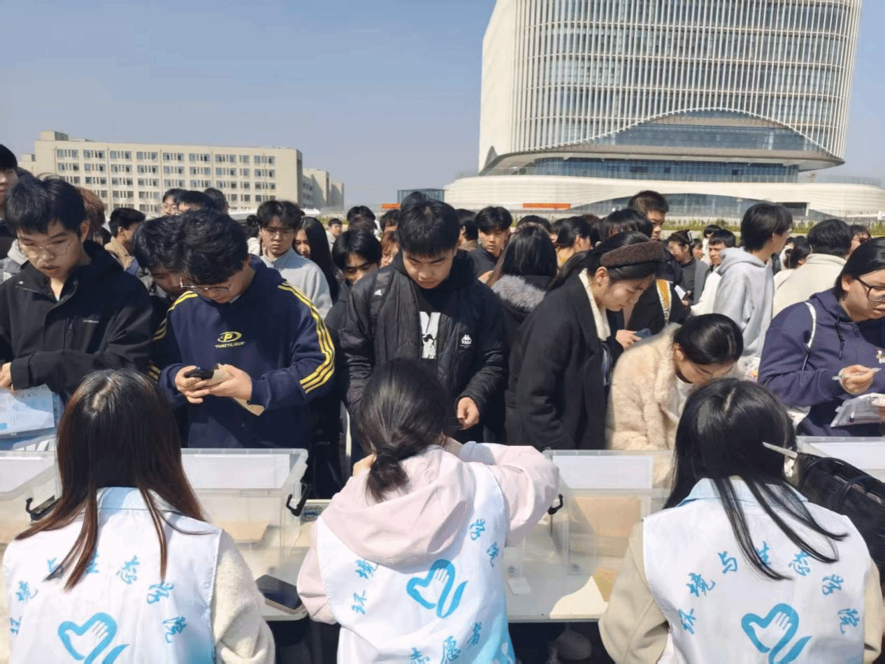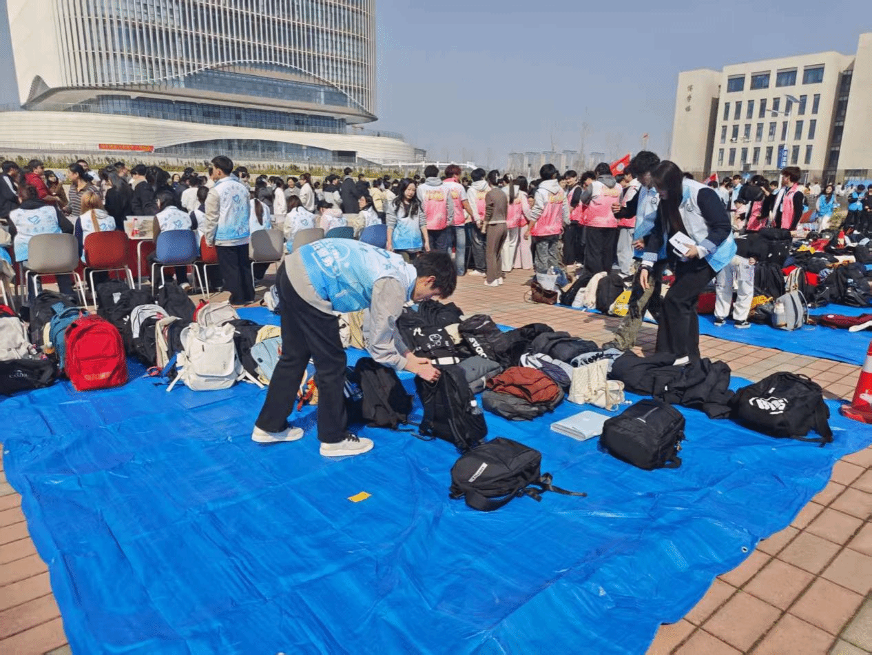 清晨,志愿者们集结到位,迅速投入工作。学院在考点入口设立“党员先锋岗”,成为服务考生的第一道暖心窗口。志愿者分工协作,协助考务人员开展安检、引导秩序,并负责考生个人物品的存放与管理。通过仔细核对信息、张贴专属标签,保障物品安全存放,帮助考生轻装上阵、从容应考。面对走错考场或神情紧张的考生,志愿者们主动上前指引,用温暖的话语缓解焦虑。