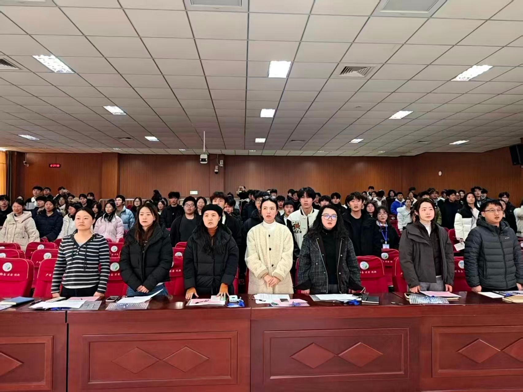 为加强团学组织建设,推进学生工作有序传承,12月9日,谈球吧体育官网入口“第五届团学干部换届选举暨学生代表大会”在德礼讲堂二楼隆重召开。学院党总支书记邢伟明、党总支副书记何欢、学生群团办公室主任王慧娟及各辅导员出席会议,全院120名学生代表参会,共同见证团学组织的新老交替与使命传承。大会在庄严的国歌声中正式拉开帷幕。