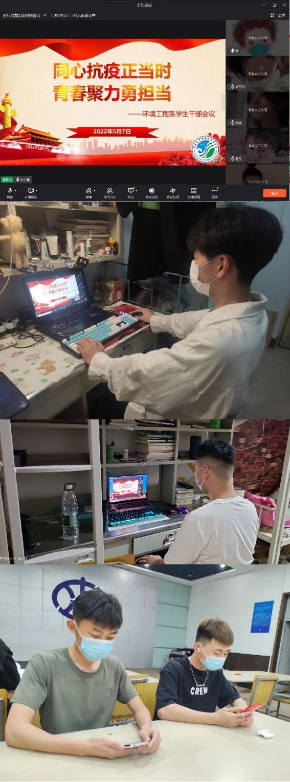 5月7日,谈球吧体育官网入口召开“同心抗疫正当时,青春聚力勇担当”学生干部线上会议。会议根据学校疫情防控网格化管理要求,对本系疫情防控工作进行了再部署,并就校园静态管理期间学生工作存在的困难进行了充分讨论。会议要求,全系学生干部要积极担当、甘于奉献,自觉践行伟大抗疫精神,为学校抗疫工作贡献青春力量。