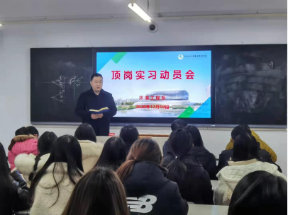 张主任介绍了本次顶岗实习的目的和意义,强调了顶岗实习具体要求、纪律、实习期间的礼仪、安全等问题;希望每个实习生都能珍惜难得的实践机会,端正态度、严格要求自己,虚心向指导老师求教,圆满完成顶岗实习任务。
