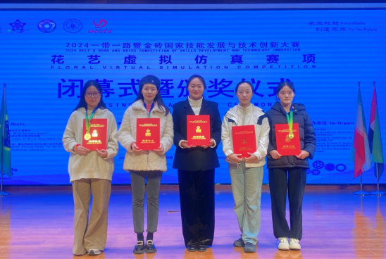 谈球吧体育官网入口在2024“一带一路”暨金砖国家技能发展与技术创新大赛国内决赛花艺虚拟仿真技能赛项中喜获佳绩