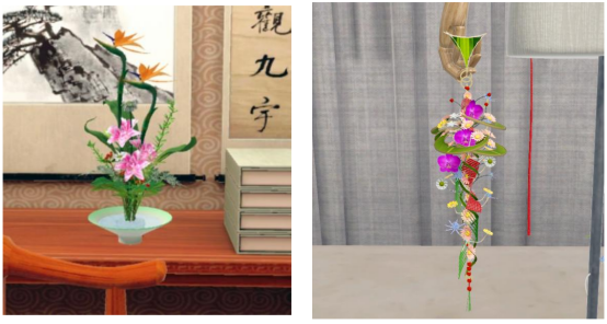 竞赛包括中国传统插花作品创作与现代花艺作品创作两项内容,利用VR虚拟仿真技术展现花材、花器、场景等应用素材,从效果设计、花艺材料的裁切加工到作品场景效果图,覆盖花艺创作的全部环节。比赛采用实操加虚拟仿真同向并行的方式,全面考察参赛选手的花艺专业技能、插花技巧运用和软件实操能力。