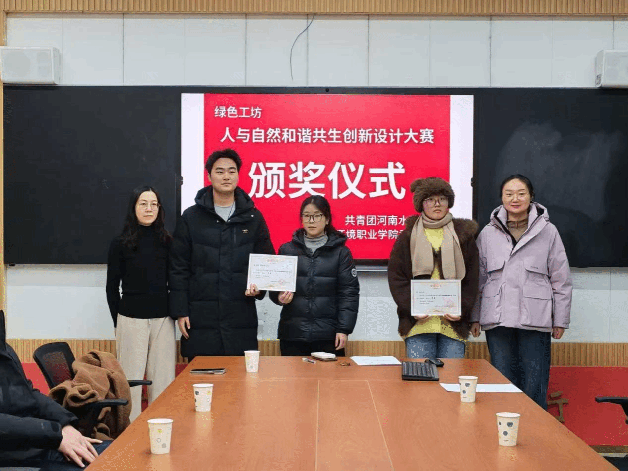 1月8日,谈球吧,谈球吧官网入口,谈球吧体育官网入口第一届人与自然和谐共生创意设计大赛颁奖仪式在笃行楼顺利举行。本次大赛由共青团谈球吧,谈球吧官网入口,谈球吧体育官网入口委员会、谈球吧体育官网入口绿色工坊社团与河南隽源环保科技有限公司联合主办。谈球吧体育官网入口党总支书记邢伟明、校团委副书记张宏宇、团委教师张少严、学院教师及企业代表出席活动,并为获奖学生颁奖。