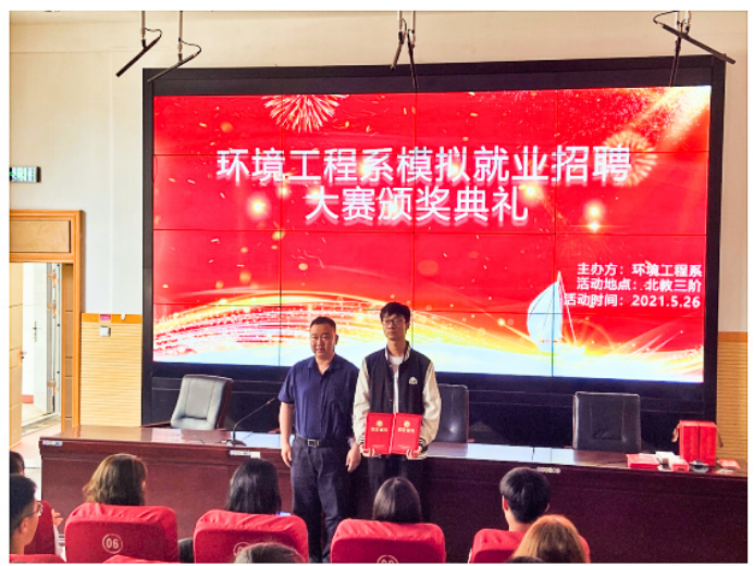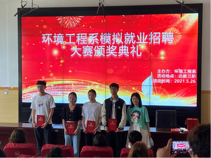 5月26日,谈球吧体育官网入口举行模拟就业招聘大赛颁奖典礼,系主任张剑以及指导老师董晓明、潘春梅、杨舒淇、王慧娟、张靖曼出席典礼。