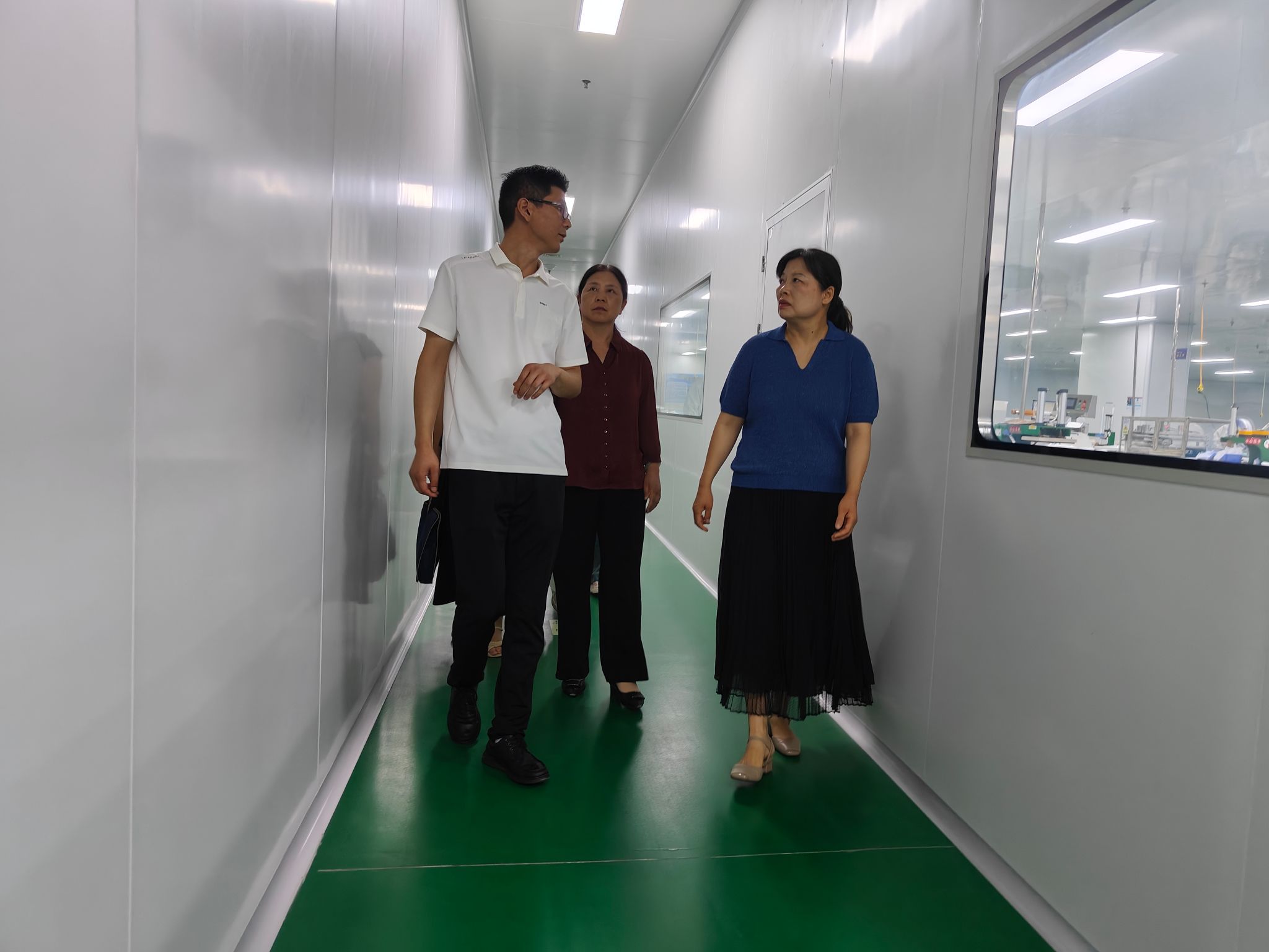 在公司负责人张波的陪同下,代表团主要参观了校招学生所涉及专业的车间和生活区。深入了解企业文化和学生工作环境,通过观摩通道了解了公司生产医用材料的产品线,以及环境检测类学生的具体工作实践。