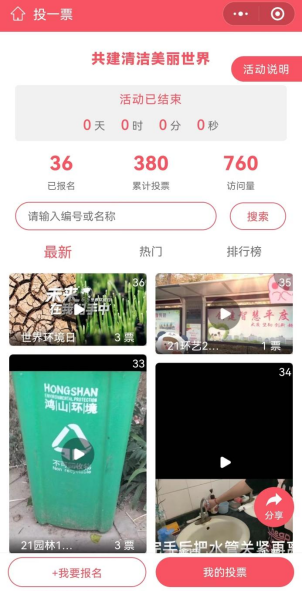 本次活动通过线上开展,学生记录了日常生活中参与环境保护的点滴行动,制作成精美的短视频后提交。经评委会初步评审,挑选出环保主题鲜明、积极向上、极具创意的短视频上传至微信小程序进行公开投票。最终评选出一等奖1名,二等奖2名,三等奖3名。