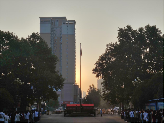 6点40分,升旗仪式正式开始。在全体师生的庄严注目中,五星红旗迎着初升的太阳冉冉升起。郭海山在讲话中要求同学们要养成良好的学习习惯,规范自身行为;提醒大家要增强自我保护意识,提防电信和网络诈骗;勉励大家要矢志努力学习,不负时代重托和师长期望。学生代表在发言中,倡导同学们要关爱和帮助身边老人,积极参与敬老爱老活动,以实际行动传承中华民族传统美德。