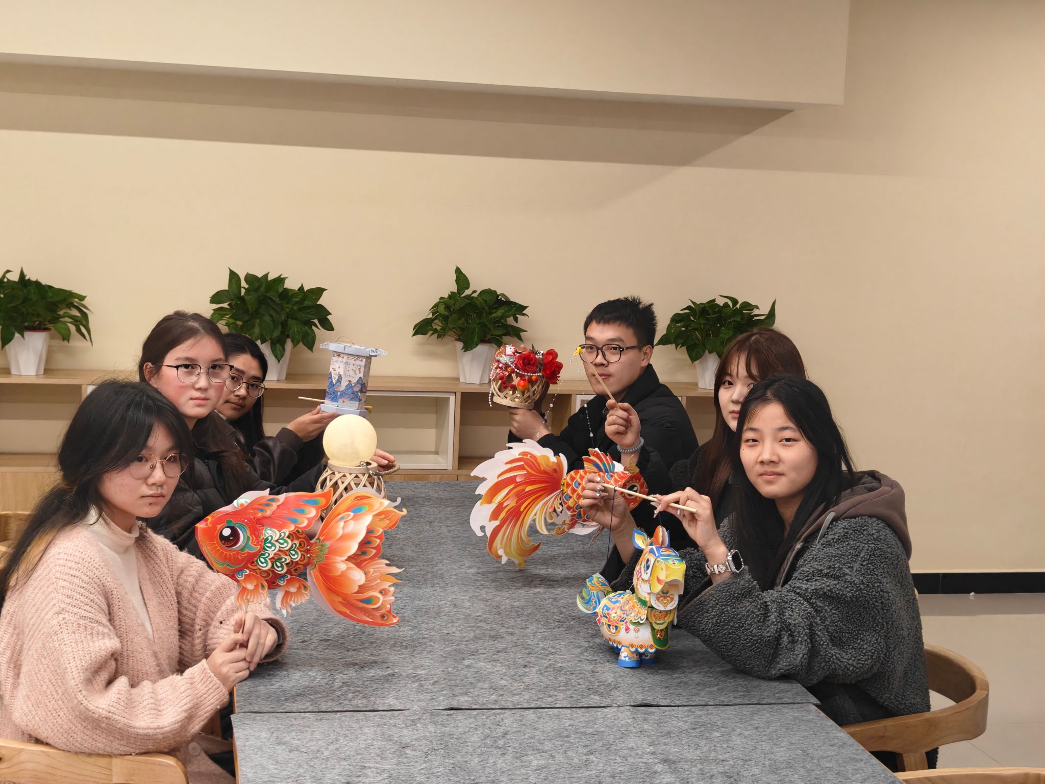 暖心包汤圆环节,同学们三五成组,在志愿者的指导下,揉面、搓圆、包馅,动作虽显生疏却满是认真。一颗颗圆润的汤圆在指尖诞生,煮熟后香气四溢,大家围坐品尝,分享劳动的甘甜,也品味着“团圆”二字的深意。创意做花灯区域,学院精心准备了DIY材料包,同学们巧手匠心,将彩纸、灯框、LED灯珠组合成独具匠心的花灯。点亮的一刻,光影流转,映照出青春的创意与对传统的敬意。大家手持花灯拍照留念,将这份元宵美好定格心间。