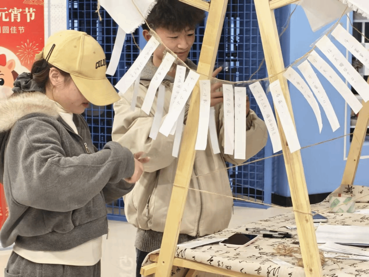 本次活动以猜灯谜、包汤圆、做花灯三大传统习俗为载体,将文化传承与校园生活深度融合,让同学们在手作与互动中感悟元宵节的深厚底蕴。趣味猜灯谜区,五彩灯谜随风轻摆,内容包罗万象,既有传统民俗的韵味,又融入校园生活的趣味。同学们或凝神思索,或轻声交流,猜中者笑意盈盈,积分兑换处欢声不断,智慧的火花在春日暖阳中跃动。
