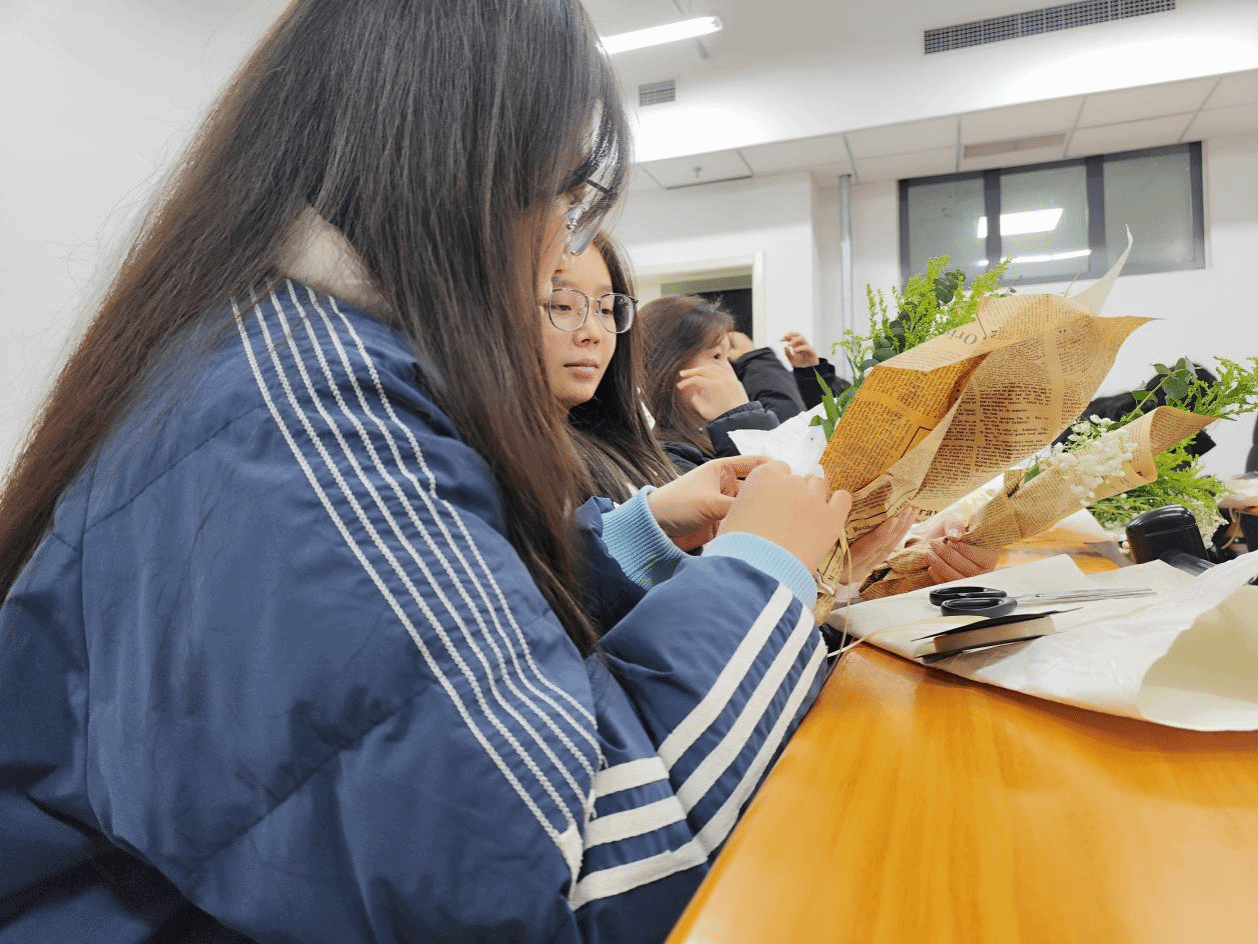 12月21日,谈球吧体育官网入口举办了“岁寒三友映冬至,手工雅集传温情”手工文化体验活动。活动以“岁寒三友”为意象主线,设置了三个主题创作区:松艺区,同学们以松针、松果为主要材料,制作挂饰、摆件与相框画,在指尖流转间体悟松树“凌寒不凋”的生命品格;竹韵区,竹片、竹条经过刻绘、编织,化为书签、竹器,传递“虚怀有节”的人文气质;梅香区,黏土、宣纸与干枝被赋予新形态,红梅盆栽、写意折扇与压花灯饰相继而生,诠释着“暗香傲骨”的精神意象。活动同时融入自然绘画与“口袋花园”创作环节,同学们或执笔描绘心中的松竹梅韵致,或以小雏菊、洋甘菊等花材,配以尤加利叶,制作可随身携带的迷你花束,让自然之美触手可及,生态理念融入日常。