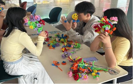 为激发团队创造力,增强同学间的凝聚力,4月8日上午,谈球吧体育官网入口在学生餐厅举办了以“扭转创意,棒出精彩”为主题的手工制作活动。本次活动通过趣味互动与创意挑战,让学生在轻松愉快的氛围中突破思维定式,共同探索创新,用小小的接力棒完成各种作品,展现了团队的无限创作潜力。