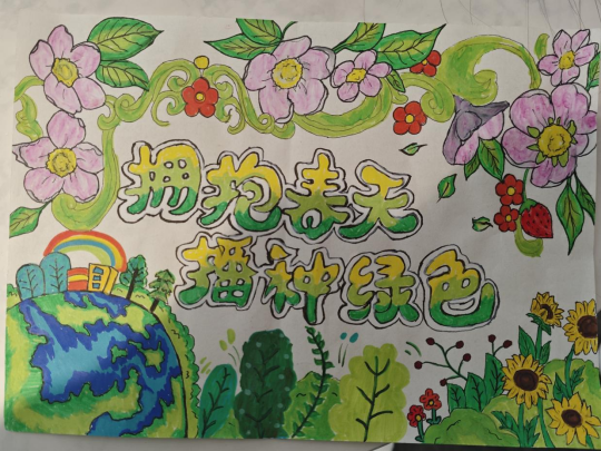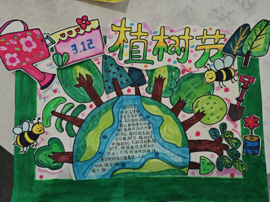 活动中,同学们用手抄报展现环保热忱、传递绿色理念。作品内容丰富多样,有的讲述植树节的由来和意义,生动呈现森林与植树场景;有的科普树木净化空气、涵养水源等生态功能,凸显树木对环保的重要性;有的描绘青山绿水,抒发对大自然的热爱与向往。