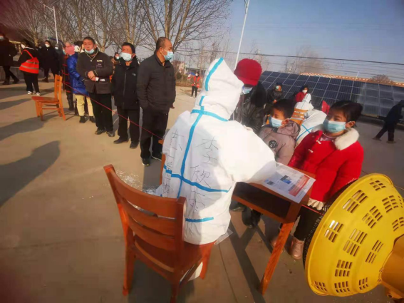 1月8日-25日,21园林1班学生王盼星在郑州市管城回族区南曹乡南曹村核酸检测站点担任疫情防控志愿者,协助医护人员开展核酸检测工作,帮助老年人录入核酸信息。她说:“作为一名大学生,面临疫情挺身而出,是我们当代青年应该具备的素质和品德。虽然这次志愿服务的经历并不长,但是却让我对志愿服务精神有了更加深刻的认识。”