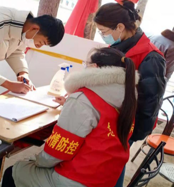 “虽然天气寒冷,但是心里却是温暖的,能通过志愿服务发挥自己的价值,是这个寒假我做的最有意义的事。让我们坚定战胜疫情的信念,相信在大家的共同努力下,一定能打赢这场疫情防控阻击战。”1月9日以来,20级环艺校企3班学生王孟菲在新乡县大召营镇店后营村防疫卡点开展志愿服务,负责登记外来进村人员的信息、扫码测温等工作。