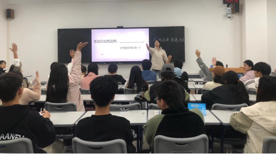 活动精心设计了“组诗词”和“理诗意”两个环节,分小组进行。在“组诗词”环节,各小组的同学按照顺序依次作答,答题期间不可讨论,充分考验了同学们的个人文学素养和专注能力;“理诗意”环节采用抢答模式,同学们需要在较短的时间内迅速理解古诗词的意境和含义,并在小组内进行讨论,然后抢答。这一环节不仅提升了同学们的古诗词鉴赏水平,还锻炼了团队的沟通和协作能力。