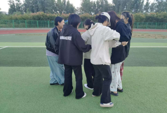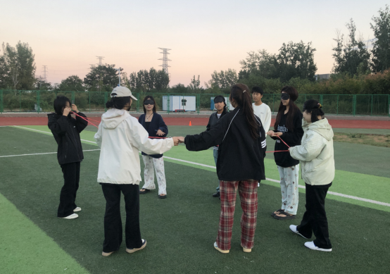 活动内容丰富多样,包含团队建设、齐眉棍、盲人方阵和解手链4个环节,每个环节都充满了挑战与乐趣。在团队建设环节,同学们被分成7至10人的小组,他们需要在规定时间内为团队起一个响亮的名字、设计一句口号以及一个独特的标志。这一环节充分激发了学生的创造力和团队协作能力,每个团队都展现出了独特的风采。