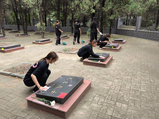 上午,全体学生怀着崇敬的心情来到新郑烈士陵园。在陵园前,大家庄严肃立,向革命先烈深深鞠躬并默哀,以此表达对革命先烈的无限敬仰和深切怀念。由学生代表手捧鲜花,缓步走向烈士纪念碑前,向烈士们敬献鲜花。随后,学生代表发言,她带领大家回顾了革命先烈们的英勇事迹。一代代革命烈士们为了国家的独立、民族的解放和人民的幸福,抛头颅、洒热血,谱写了一曲曲感天动地的英雄赞歌。这些事迹让在场的每一个人都深受感动,更加坚定了为国家和人民贡献力量的决心。最后,学生们自发组织起来,在烈士陵园中清扫散落的树叶,用抹布擦拭先烈们的墓碑,用实际行动表达着对革命先烈的敬仰和缅怀之情。