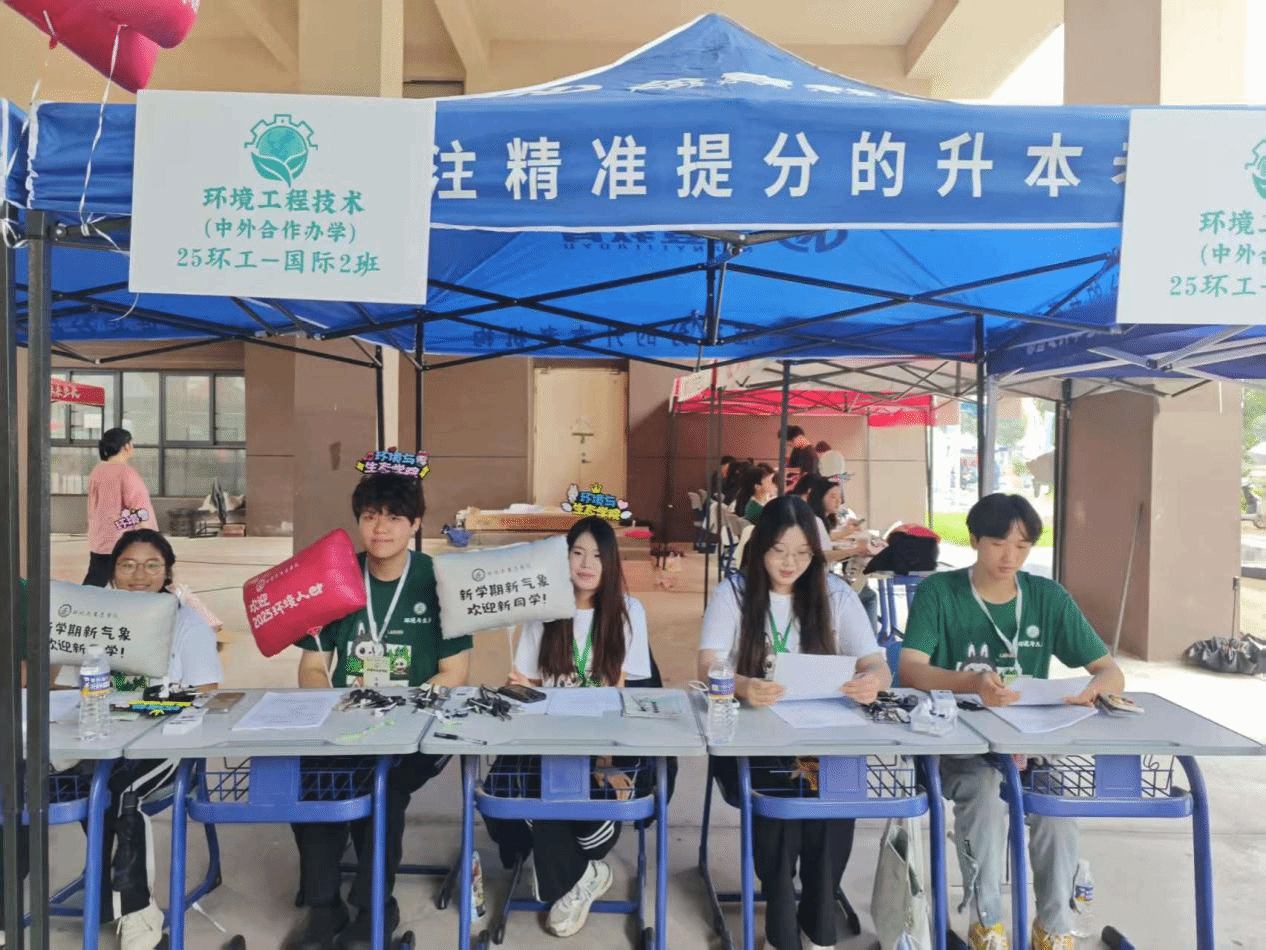 今年,学院将创新理念融入迎新实践,打造了一系列互动展品。其中,“新生合影墙”成为焦点,上面清晰地印着每一位新生的姓名。新生们纷纷在此驻足,兴奋地寻找自己的名字。此外,学院还定制了多种手持牌和合影框,如“你好,环境人er”、“执生态之笔,书青春华章”等标语,这些设计不仅提升了迎新的仪式感和互动性,更让新生在踏入校园的第一时间,就通过沉浸式体验直观感受到专业的特色与魅力,使报到成为一场生动而深刻的“专业初体验”。