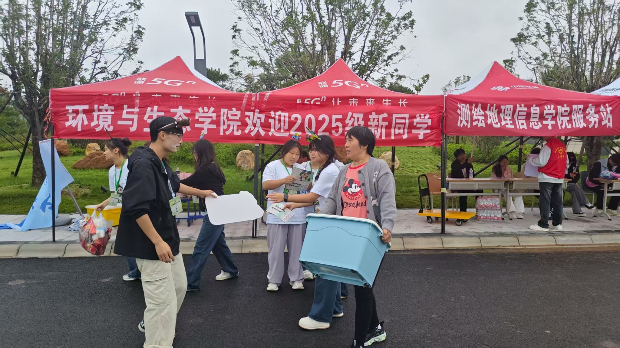 迎新工作中,志愿者团队的身影格外动人。他们由学生积极分子、学生会干部和大二优秀学生志愿者组成,以高度的责任心和饱满的热情投入服务。从校门口接引到报到点;从行李搬运到协助办理住宿手续,带领新生熟悉校园环境耐心讲解……他们用实际行动诠释了环境与生态学院学子的责任担当和良好风貌。各班辅导员在指定报到处接待新生,发放内含校园拼图、水敏卡、院徽别针等精美礼品的“迎新盲盒”,让大家感受到学院的仪式感和归属感。