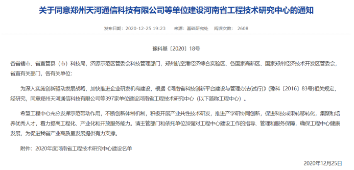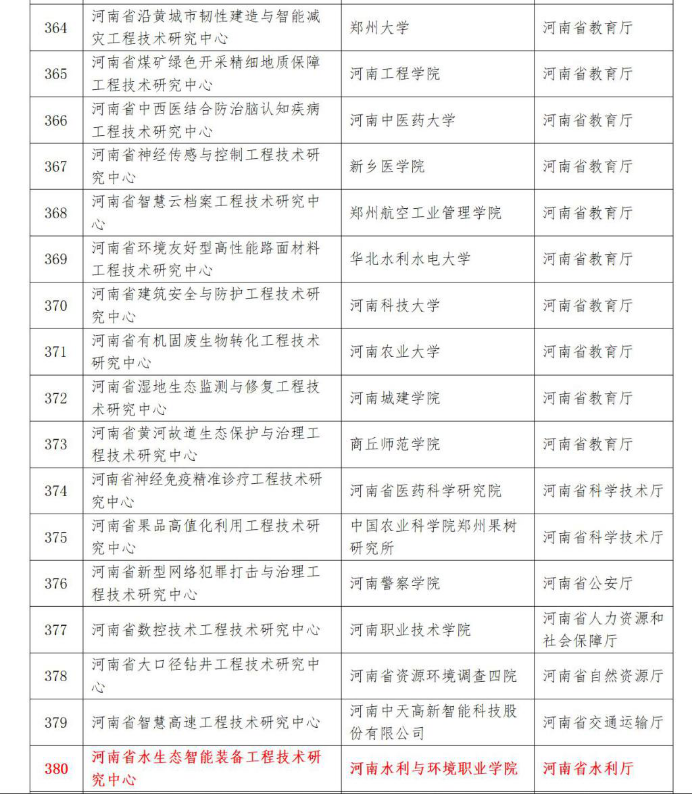 12月25日,省科技厅公布了2020年度新建河南省工程技术研究中心名单(豫科基〔2020〕18号),谈球吧体育官网入口校长郑志宏教授主持申报的“河南省水生态智能装备工程技术研究中心”获批建设。